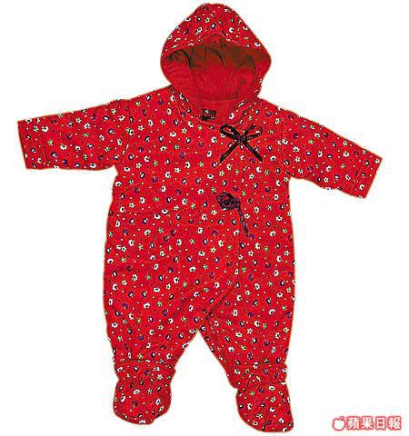 絲質夾棉蛤乸衣,鮮紅色襯碎花,紅噹噹可以買定等過年着,和尚袍式設計最適合初生或較小的嬰兒,勢必成為全場最Sharp醒嘅BB!