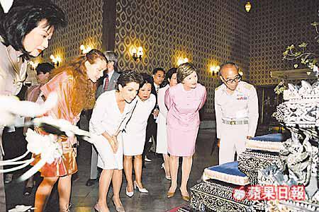 董太趙洪娉亦有隨行,但八方知道董太行程就輕鬆好多,日日去參觀廟宇、shopping同按摩,重有機會同美國第一夫人羅拉傾偈。