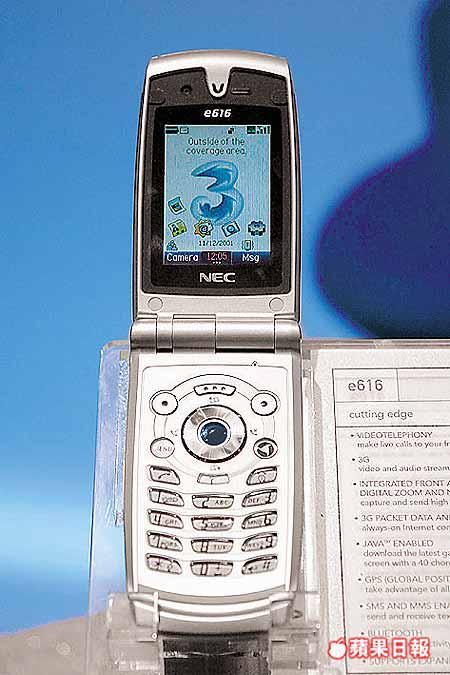 為英國和黃提供首部3G電話的NEC,預計明年推售這部e616手機,外形及設計與首部3G電話相同,只是略為提高接收功能,售價待定。