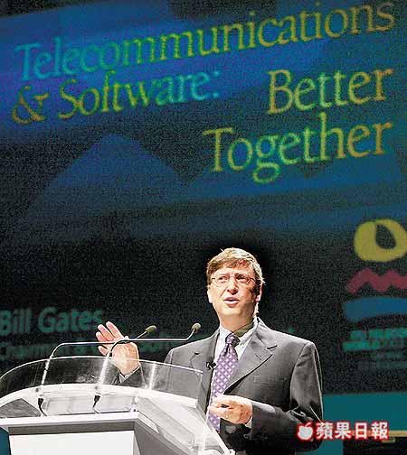 微軟主席BillGates親自到場介紹微軟的新產品及服務,包括在明年首季推出的WirelessProvisioningServices下載服務。