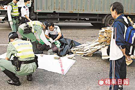 為了內地長孫的「老婆本」,一名七旬老婦每天推着木頭車到工廠區執拾紙皮,她昨日將滿載紙皮的木頭車推往變賣時,慘遭一部泥頭車輾斃。死者丈夫對驟失相伴五十載的老伴,傷心欲絕說:「喺內地『文革』都捱得過,估唔到嚟咗香港後咁樣死法」! 記者:宋光明、馮志偉