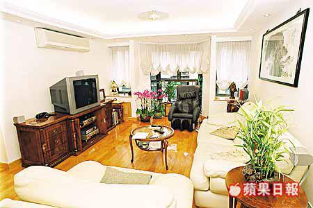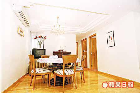 曲尺形大廳沿邊建假天花燈槽,流露大宅風範。其他基本用料如地板、窗台、廚房設備等,均與新樓無異。