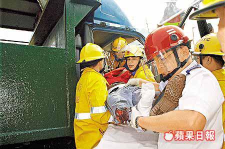 警方及消防員接報到場,撬開車門將受傷被困司機救出送院,現場交通一度受阻。