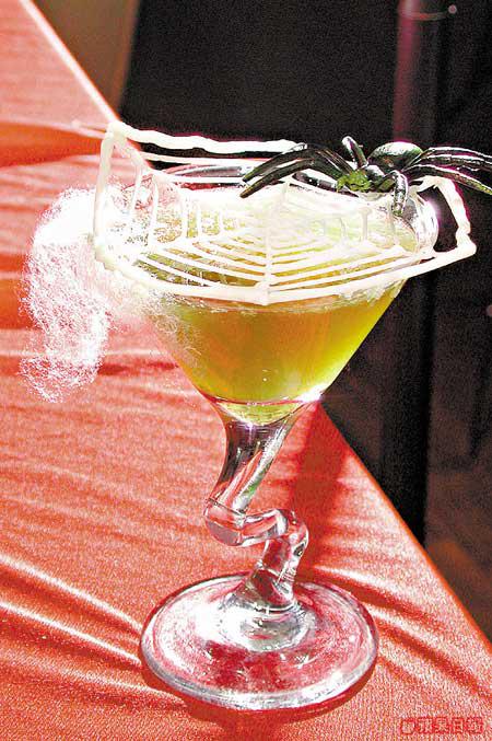 薄荷酒加梳打水做成,蜘蛛網是白朱古力。