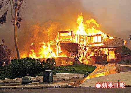 美國加州南部燒了數天的山林大火,火頭至周日已多達十處,造成十三人死亡,約八百五十間房屋焚毀,包括多間豪宅,另有三萬間屋受威脅,數以萬計居民要緊急疏散。大火已逼近至洛杉磯以東八十公里處,洛杉磯、聖迭戈等四個縣宣布進入緊急狀態,北美洲多班航機取消或延誤。這是加州十年來最嚴重的山火,有官員估計要到下月五日火勢才受控制。