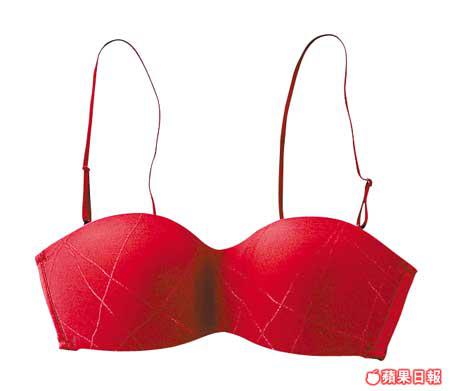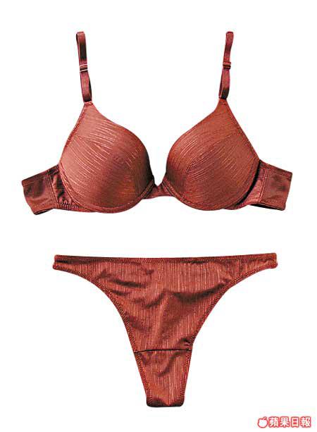 Amo喱士胸圍,杯罩鋪上網層喱士,喱士花「突圍而出」,造成層次效果,在主色棗紅色中加入較Sharp的金橙色花瓣,令色調效果不會過於深沉,兩者配搭得宜。