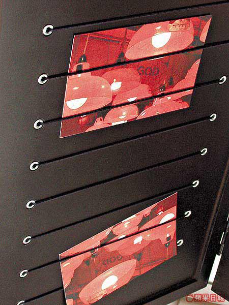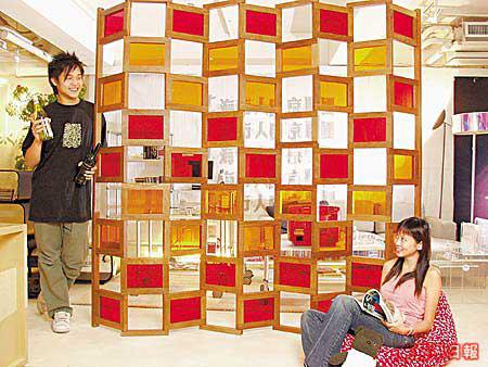 以鋼和阿加力膠製成的屏風營造透視感覺,但當你在屏風的背面放上心愛CD或VCD時,它就會拼貼出獨有的圖案。如果你想把屏風移動到不同地方,裝上小轆便可以呢。