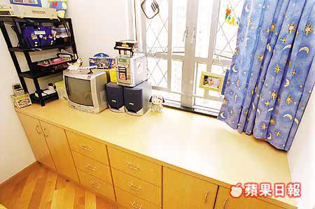 是次介紹的單位大廳闊近10呎,長度逾20呎,戶主集中選用輕巧家電,即使飯廳訂做較大型的入牆櫃,通道依然闊落。兩細房的家具以訂做為主,善用空間;主人套房窗前以地櫃模擬成窗台格局,但可貯藏大量雜物。廚廁間隔與一般私樓無分別,選料相近,戶主當年斥資近20萬元裝修,廚廁設備是重點之一。