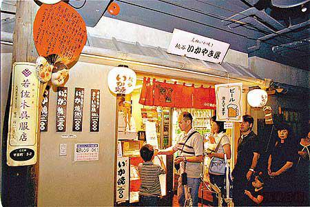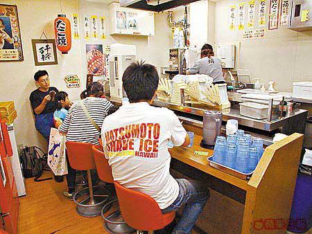 其實,我是應該收口的了,最錯就是橫丁的店舖排陣實在太接近。一出北極星,鼻子又被陣陣燒八爪魚丸的香氣攻陷了。告訴自己吃一顆就好,可是,這間創業於昭和8年、發明「八爪魚丸燒」的會津屋,那些混入了大大粒八爪魚肉及醬油味的魚丸,熱騰騰香濃濃的,吃了一顆,胃好像會自己伸縮發脹,自然又騰出空間讓我繼續擦。怎麼辦?如果有一大班朋友跟我分甘同味多好!算吧,工作這麼苦,偶爾放縱一下也不為過吧!