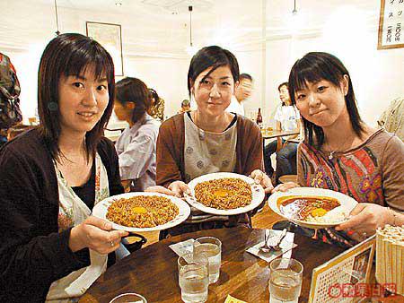 自由軒最著名的是咖喱,不過這裏賣的跟我們平常吃慣的甜甜日式咖喱飯不同。自由軒出名的是咖喱撈飯,上桌時已經撈好,咖喱飯沒有甚麼配菜,只有一隻生蛋。原來,大阪人吃咖喱都愛加入生雞蛋,說會令咖喱更香滑。單是看到金金黃黃的賣相,我已經口水流,急不及待放一大啖入嘴巴。這種咖喱好香且較辣,感覺似嗅着陣陣印度咖喱粉,勁濃烈的味道實在叫我愛不釋手,一口一口愈吃愈起勁,嘴唇也愈見麻痹。在日本,實在沒別處可吃到這種咖喱味,難怪不論正店還是這間小分店,人龍永不斷。