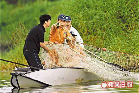 在附近的記者和漁護署人員立即趕來查看,發現對岸的鱷魚,尾巴向着河邊伏在草叢中,狀似很悠閒的在曬太陽,沒有任何動作,各人亦不敢「打擾」。記者不斷拍照,有人則租艇希望更接近觀察其動靜,漁護署人員亦登上小艇設法捕捉。
