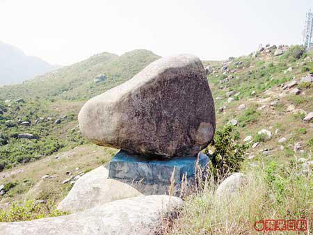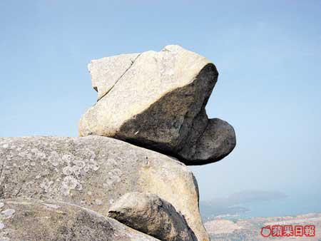 菱角山山頭布滿碎石或是巨石。而散落嵯峨山頭的怪石之中,較矚目的,早就被遊人冠上了名字。最多人認同的,要算米奇老鼠石,不過就要以側面示人才夠傳神。別了米奇後,竟然又碰見另一人氣卡通偶像史諾比。其實,山頭的石都古靈精怪,至於像甚麼,就要發揮一下你的小宇宙,而我就發現了一對依偎的男女人頭石。