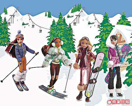 左起Chelesa、Madison、Barbie、Nolee一身滑雪造型,很有聖誕Feel。