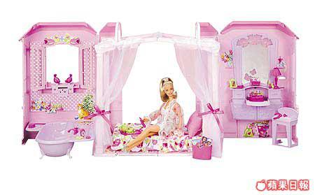 少女恩物,有聲出、有燈光效果,又床又櫈又浴缸,精緻配件多的是;一褶,即成小巧可愛魔術屋,附手柄方便攜帶。