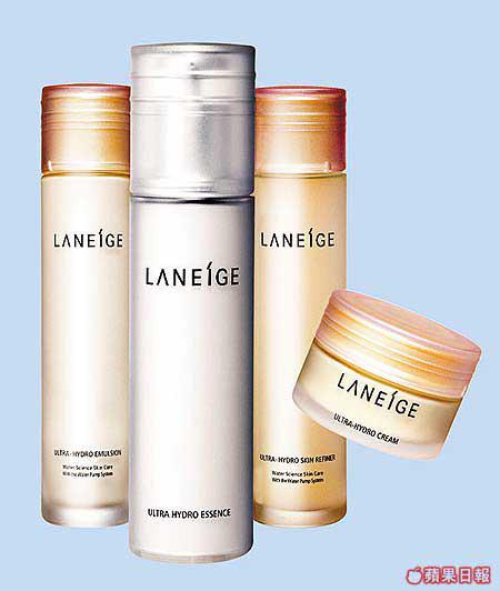 自去年推出高效原水份精華UltraHydroEssence($260),因為特別針對20~30歲肌膚乾燥而大受歡迎後,今年秋冬Laneige再接再厲為「高效原保濕系列」增添新成員,包括高效保濕細膚水UltraHydroRefiner($170)、高效保濕液UltraHydroEmulsion($190)和高效原水份修護霜UltraHydroCream($230)。全系列除了利用Laneige專利的WaterPumpSystem外,更加入三重水份修護系統,強化肌膚由內至外的儲水能力,防止水份因外來因素而流失,特別適合因天氣轉變及壓力引致的乾燥缺水肌膚使用。