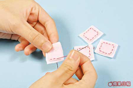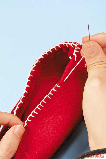 幾對鞋大致都以三塊布縫合,看似簡單,但由於鞋頭位隆起,縫合時要慢慢就位,否則完成品便不好看。針步當然愈密愈好,另外若做鞋仔給小朋友,由於所需的布量很少,故麖絨可到一般手工藝店買,三至五元便有一塊。毋須走到專賣布的店舖,因為那裏起碼要買一碼。