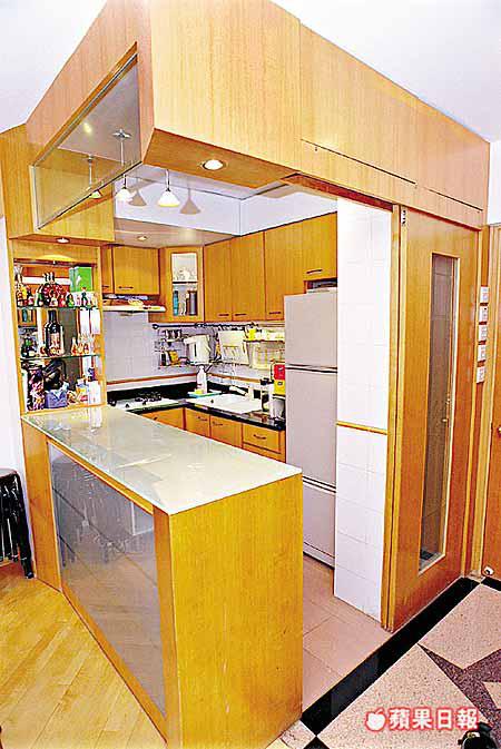 單位全面翻新,廚房改開放式,設備全新;新鋪全屋地板,配合大量射燈照明,滿室明亮。客廳向鄰房偷位,置放影音地櫃,拉闊客廳寬度,製造更理想的視聽空間。縮細了的房間,用作工人房,置放大衣櫃,而擺放睡床的位置,部份是向毗鄰的小朋友睡房偷位得來,由於小朋友房面積較大,故空間受影響不大。