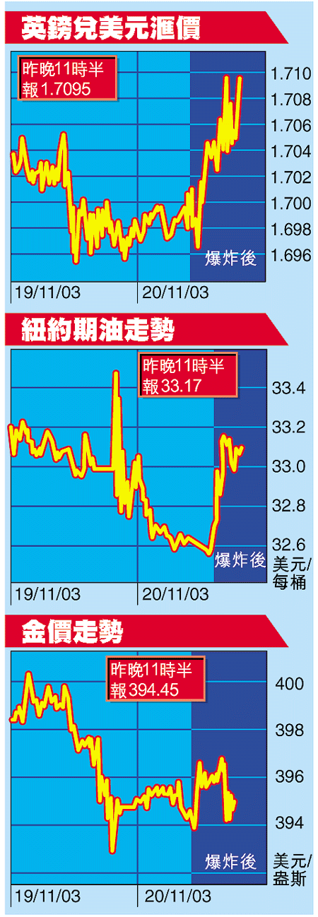 土耳其股市在連串炸彈襲擊後停市。伊斯坦堡全國一百指數停市前報14617.53,滑落7.4%。