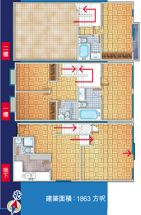 面積:1863方呎(實用率90%);另天台約900方呎及花園約600方呎