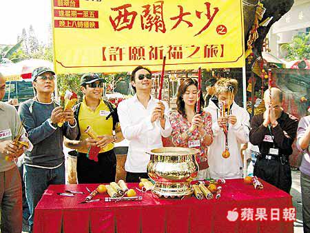 張智霖、佘詩曼(阿佘)、鄧一君及呂珊等,昨日在大埔許願樹為無綫劇集《西關大少》祈福。