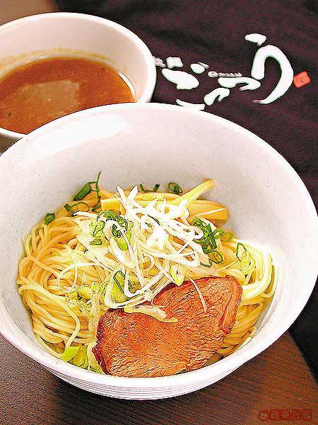 年輕俊俏面孔,加上賊仔帽,專業地站在鍋爐前淥麵,這情景我還是頭一次見,店主青田玄先生兩道眉毛修得極潮氣,原來六坊慣用靚仔師傅睇場,東京店亦如是,不然又怎吸引大批年輕捧場客?除了「賣相」討好,六坊的湯底也很考究,它濃得只要擺放片刻,湯面就浮現一層膜,濃湯幼麵,簡單配料,藉着湯底油份高,撈大葱和椰菜同吃,極油潤可口。