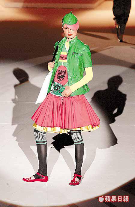 服裝風格是活潑多姿的,數之不盡的顏色組合,帶少女味的膠外套、cutiecut上衣、下身一律襯colourtightpants與五十年代時式的fullskirt,格子、條子及大圓點圖案魚貫出現。配飾是chunky的珍珠鏈或七彩手鈪,styling上溢發一份Marras從前沒有的aggressive生氣。