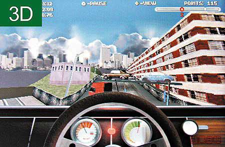 徹頭徹尾屬遊戲機格局嘅Zodiac,由設計至開賣都係力Sell其打機功能,尤其3D畫面顯示更加冇得頂。講得咁強,就梗係要用隻賽車Game嚟試試佢,3D掂唔掂同埋有冇「窒頭窒勢」就可以一清二楚。所以開機第一件事就安裝跟機嘅《SCStuntcar》,一款有雪地又有城市景嘅越野賽車Game,背景全部睇得清清楚楚,速度表現更加冇得彈,入彎、畀油全部清脆利落,由顯示卡大廠ATI特別為Zodiac設計嘅8MBW4200圖像加速器功力的確唔簡單。最正係AnalogController全方位控制,操控絕對得心應手,想捽軚劈彎話咁易。
