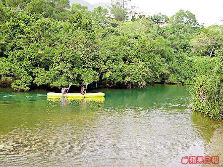 我們一行二十多人從遊客中心閘口出發入村,由於附近是度假營地,閒時也有人在這裏進行水上活動,見他們划着獨木舟,看起來,像是在熱帶雨林中探險,我們這些圍觀者太多了,似乎破壞了他們沉醉於大自然中的雅興,實在不好意思。