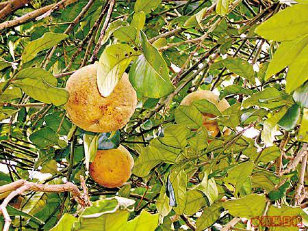 過橋後往右沿北潭涌自然教育徑走,抬頭見到很多瓜果,這處是一個小型私人果園,大家眼看手勿動,這裏有大大個沙田柚、木瓜、竹蔗、蔬菜等。這些蔬果在街市見得多,掛在樹上的、長在田裏的,都不多見,大家都很興奮。