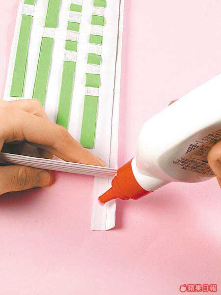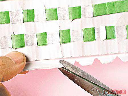 材料:白色及綠色幼坑紋瓦通紙各1張$18