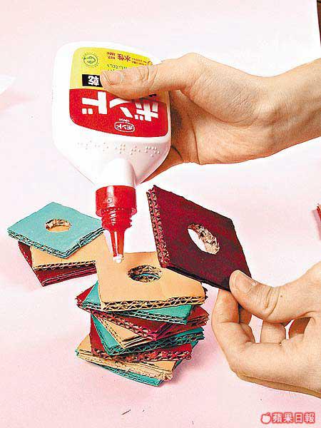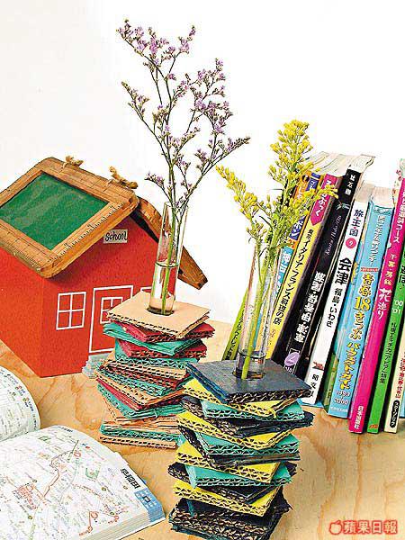 香港家居環境狹窄,想在枱頭放盆植物,都要左搬右搬才可騰出位置。這時便可運用生活智慧,利用幼身的試管,插些簡單的水種花,為工作及生活添情趣。今次利用雙層瓦通,剪下許多小方塊,髹上七彩顏色,將它們隨意的層層叠上,便成了的骰精緻的小花瓶。