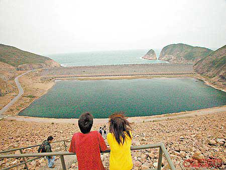 可以選擇一清早從北潭涌步行出發,我比較懶,在下午三時才直接乘的士在萬宜水庫東壩下車起步,省回四個多少時。起步點已令你目瞪口呆,東壩高104米,1978年落成,當時是世界最高的岩填大壩,防波堤對出就是破邊洲,清楚看到兩島清脆利落的破開。