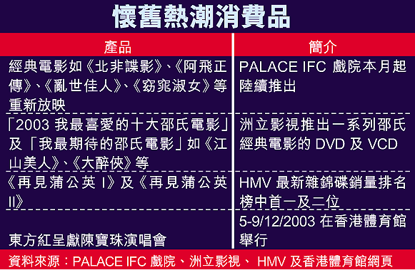 城大管理學系副教授曾淵滄表示,每逢懷舊產品興起,都顯示經濟有復甦迹象,因相對年輕人,中年消費者最受經濟影響,尤其近年經濟欠佳時花錢特別謹慎,但商家現都趁經濟稍稍好轉,推銷針對中年人市場的消費品。
