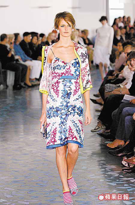 整個collection成功地傳遞出乖巧文靜的書院味,以及愛「色」一族的跳脫形象。而模特兒腳上的蛇皮pumps或飾以羽毛的高跟鞋,亦是這個系列的美麗accessories。PaulSmith續以其強項,運用顏色及圖案均有一流功架,文靜活潑形象同時兼顧得到,正是最切合現實生活所需。