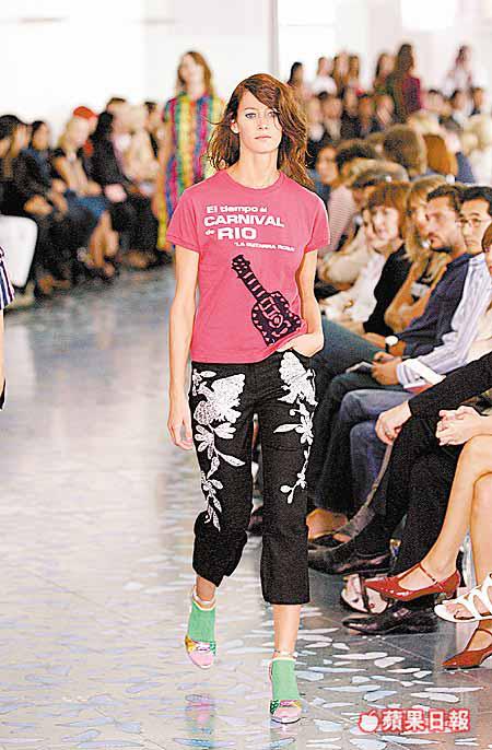 除停不了的藍外,用作配襯的還有搶眼的桃紅或銀色,和刻意作對比的vividcolour配對,以及有如結他或香蕉圖案outfit的出現。