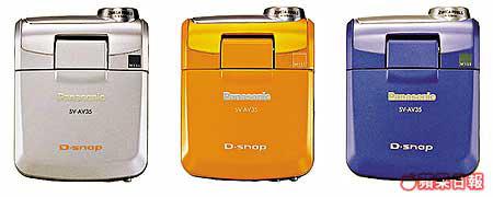 論呢期最潮嘅數碼產品,首選係MPEG4攝錄機;雖然未至人手一部,但如果稍有餘錢,邊個唔想整番部!早前極炫登場嘅PanasonicD-snap超薄型MPEG4攝錄機,咁快又話有後繼機SV-AV50-S同SV-AV35-S推出。