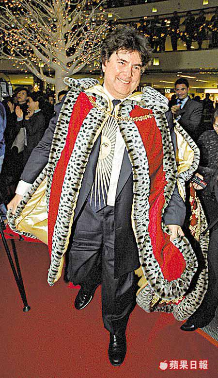 太古地產旗下商場迎聖誕招數多,太古城中心重出動埋3個高層扮鬼扮馬主持開幕禮。太地董事及總經理詩柏(圖二)一身宮庭大臣長相打扮,睇落唔算好特別,反而冬令女公爵嘅郝唐惠莉(圖一左),同幻法公爵嘅郝繼霖(圖一右)造型重有睇頭。難得佢哋肯瞓身演出,都算係咁嘞。 區民傑攝