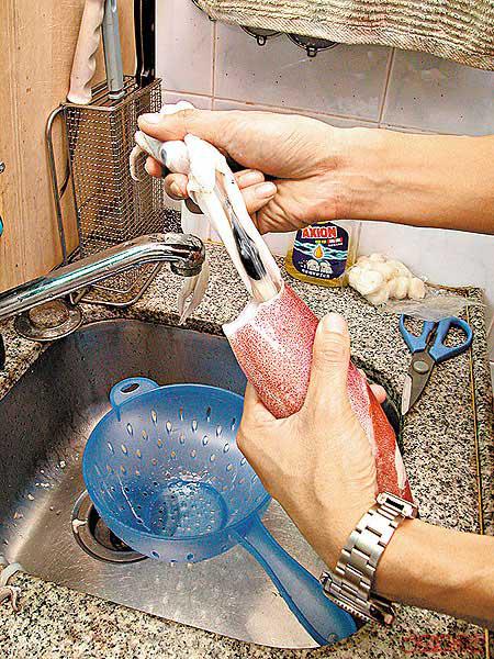 1 要製造魷魚圈的「雙翼齊飛」別致效果很簡單,只要切魷魚圈時打平,中段最闊部份在蒸熟後便會彈出。