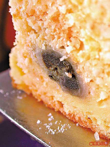 甘笋鮮蠔蛋糕:將鮮蠔熬至入甜味,加入甘笋絲及其他蛋糕材料製成。蛋糕內的蠔外貌有點似皮蛋,但蠔的味道不算太濃,配以甘笋味濃的蛋糕,口感特別。(c)