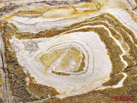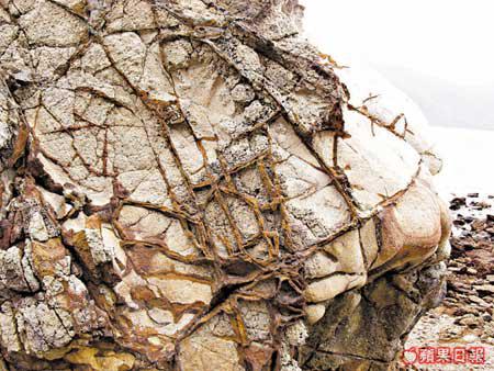 在荔枝莊那裏的龍船石都呈現塊狀崩解,在崩解出來的部份更可以找到很多切口頗整齊小方塊。拾起小塊細心察看,可以看見沉積物固結成岩石紋理,像千層糕般一層一層。