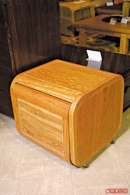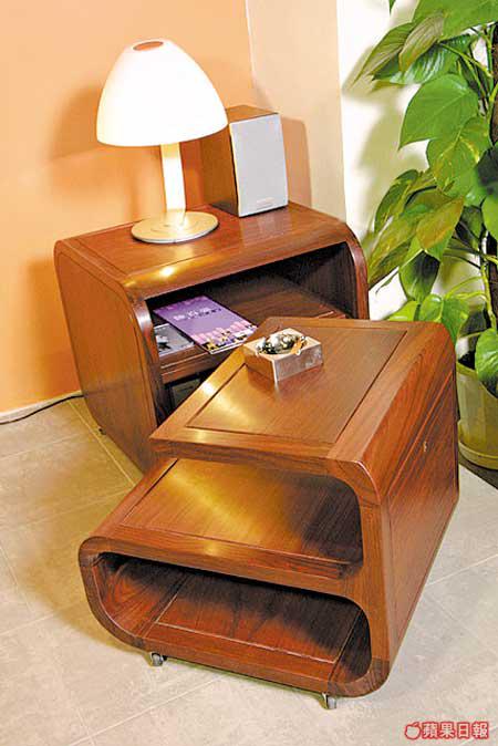 這張一分為二的立方體茶几,一邊可當活動茶几用,另一邊可充當床頭櫃或貯物櫃,非必要時又可併回原狀,夠晒慳地方。