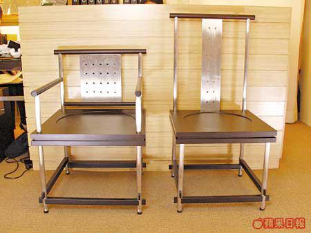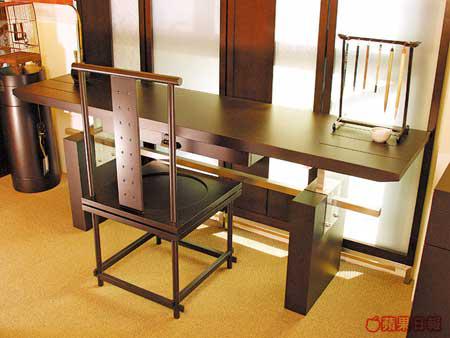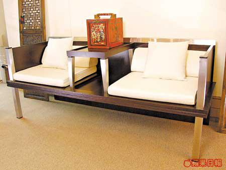 以古代鴉片椅作靈感,深調子的焗漆櫸木,配上冰冷的銀色不銹鋼,再加上利落纖幼的線條,令傳統中式家具的笨重感覺盡失,觀感上也輕巧得多。