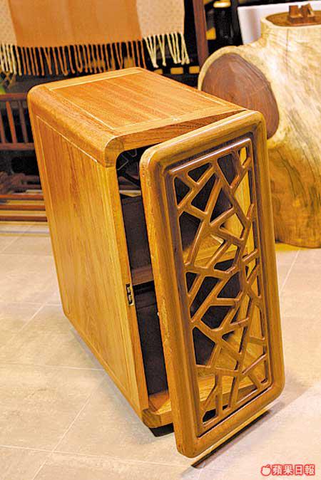 乍看不過是普通的貯物櫃,但放在書房內即另起作用,因櫃內的層板可隨意拆出,還可放下一個電腦主機,只要將電線從冰裂紋木框穿出便可。