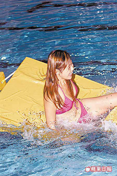 一班水着靚女要先踏過泳池上的浮板,然後在水底砌圖籌款,眾人前晚不停在浮板上走來走去練習,靚女們的表現都很「論盡」,頻頻跌落水。眾人之中,以阿夢的私伙比堅尼最矚目,她經常站在池邊讓記者拍照,展示驕人上圍。不過阿夢的身材和樣貌跟當年參選時,似乎有很大的改變,除了下巴尖了,眼睛亦好像變得大了。