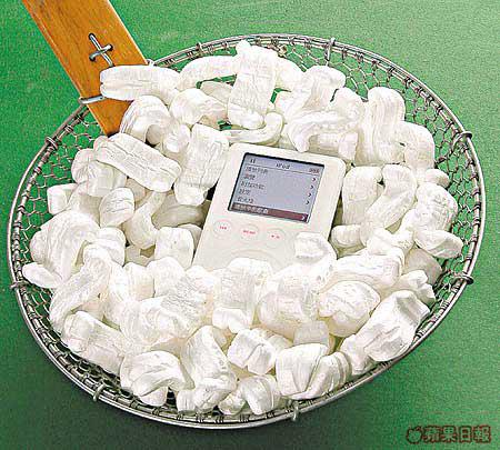 雪白iPod內外都咁吸引,好多人都想據為己有,而今日《蘋果日報》及蘋果電腦就聯手送出3部20GBiPod畀你,不過想得到唔係咁簡單,首先就考考你眼力,估吓左圖總共有幾多白色發泡膠粒,再將答案填在參加表格內。