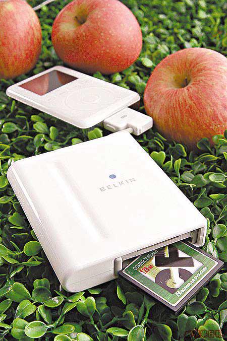 全白色嘅iPod,當然配件都要襯番一套先夠型仔,兼且更可以為iPod自我增值,絕對唔止聽歌咁簡單。而生產唔少iPod配件嘅Belkin,當中呢個MediaReader就相當唔錯,iPod白色外殼可以「吸納」時下大部份記憶卡類型,CF、SD、MS及MMC都冇問題,最適合就係配合數碼相機使用,加多$850就可以當多個流動硬盤,慳番唔少錢買記憶卡。另一個同樣由Belkin生產嘅錄音咪,就可以將iPod變為錄音機,即插即用相當方便。