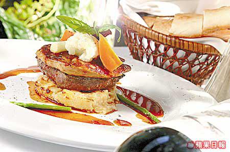 煎鮮鵝肝及牛柳伴陳年意大利醋$260:Cedric一說到這道得意之作,就高興得表情多多:「這道招牌菜任何人吃過都讚好,因為我不惜工本,選用貴價的陳年意大利油醋,還有靚牛柳和鵝肝。」說着他走到廚房,取了一瓶精緻的陳年醋給我看,還要我嘗一口,味道酸甜中帶香草幽香,Cedric滿意的說:「用它來帶出鮮鵝肝和牛肉的濃味,最適合不過。」果然是法國老饕,鵝肝菜式一道又一道。