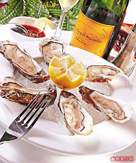 法國香檳$540/瓶:逢星期五及六晚都是餐廳的蠔食夜,只要你柯打一瓶法國VeuveCliquotPonsardinBrutChampagne,就馬上送你半打原價$125的法國FindeClaire生蠔,即叫即開的鮮蠔,在燈光之下水盈盈,入口能嘗到海水的鹹味,滴些香醋汁,呷一口香檳,忘卻工作辛勞,全情投入美食。