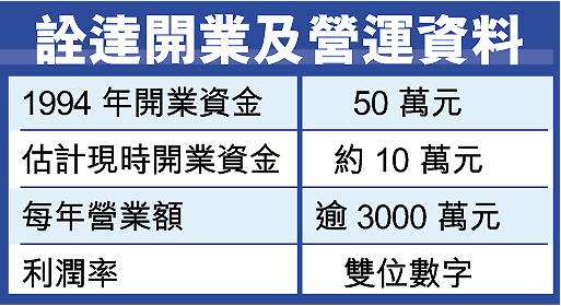 儘管詮達過去2至3年生意額變化不大,每年維持逾3000萬元,但他覺得仍不失為一盤穩定生意,因為縱使在「沙士」爆發期間,銷售額也沒受很大影響,一日有公司存在,就要用這三部器材,即使為慳錢不換新機,每隔一段時間也須替換耗材和零件。