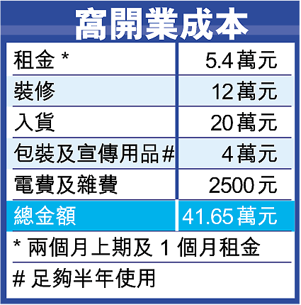 貨源方面,由夫家提供及給予意見,加上身邊的朋友拔刀相助,如室內設計、印刷等。選定在美麗華商場開業,主要是樓上有逾20層寫字樓數以百計的OL、商場有食肆及數十家名店、附近又有不少寫字樓。